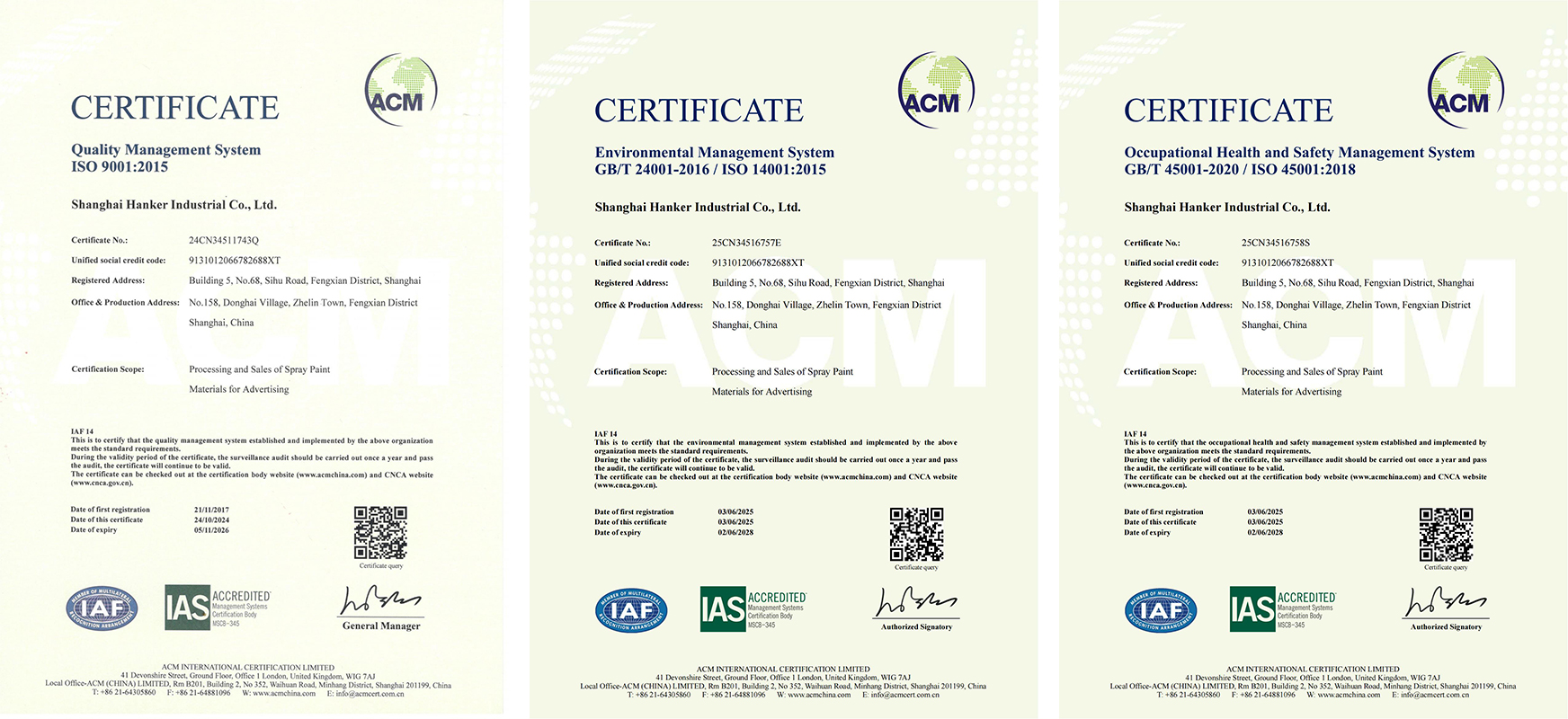 Onlangs verkregen Shanghai Hanker Industrial Co., Ltd. (aangeduid als "Hanker") met succes de ISO 9001: 2015 Quality Management System -certificering, ISO 14001 Certificering van het milieubeheersysteem en ISO 45001 Occupational Health and Safety Management System -certificering verkregen door de audit van ACM International Certification Limited. Deze prestatie toont aan dat het bedrijf volledig aan de internationale normen heeft voldaan in kwaliteitscontrole, milieubescherming en veiligheid van medewerkers. De acquisitie van deze drie systeemcertificeringen is het resultaat van Hanker's langetermijnverplichting aan gestandaardiseerd beheer. Door de productieprocessen te optimaliseren, de preventie- en controlemechanismen voor het milieu -risico op te zetten en de trainingssystemen voor gezondheid en veiligheid op het werk te verbeteren, heeft het bedrijf gestandaardiseerde controle over de gehele keten verkregen van grondstoffenaankoop tot aflevering van eindproduct. In de toekomst zal Hanker, die deze certificeringen als basis als basis, de technologische innovatie- en managementupgrades verder verdiept, actief de industrie-universitaire samenwerking met universiteiten bevorderen, geavanceerde toepassingen op het gebied van materiaalmateriaal onderzoeken en bijdragen aan de hoogwaardige ontwikkeling van de industrie.